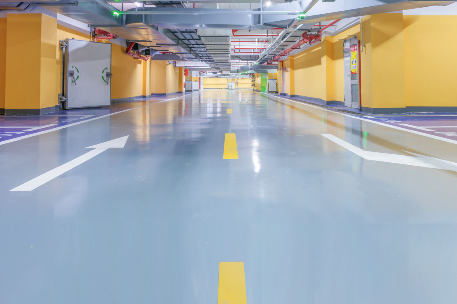 - طلاءات أرضية مقاومة للسَّحل: لصالونات الإنتاج، مواقف السيارات في المراكز التجارية والإدارية